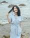 晒夏日美照 身穿白裙清新怡人,