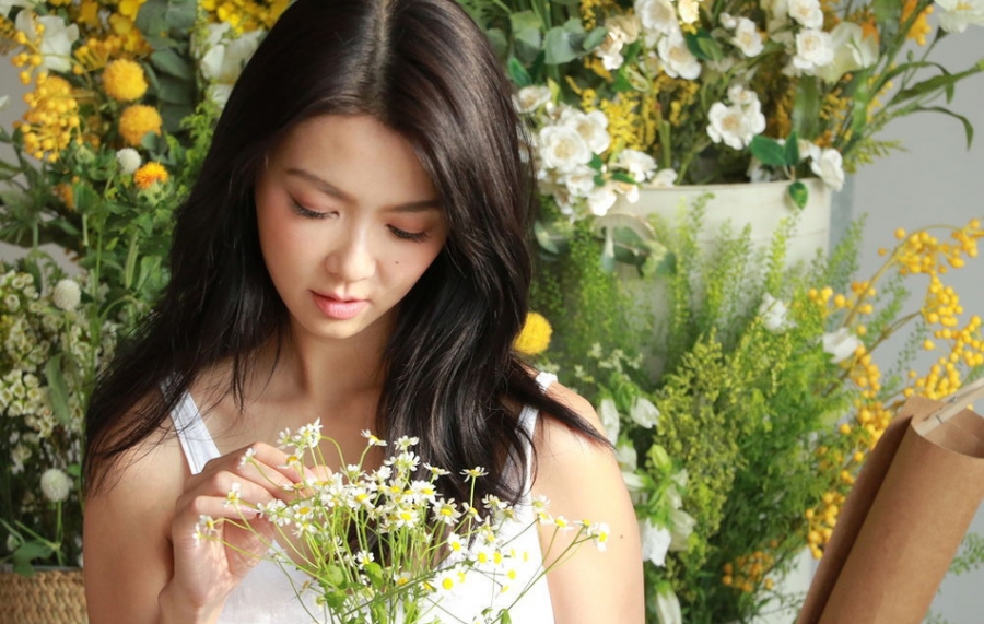 薛凯琪新专辑封面拍摄 花丛之中显清纯可人