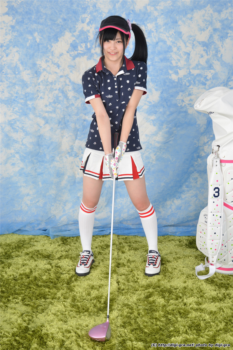 ,日文名是江奈るり,Ruiri Ena,出生于1994年6月15日,来自于神奈川县,职业是AV女优,这是一组她身着高尔夫球装拍摄的大尺度露底写真图片,整个图片风格看上去很可爱。