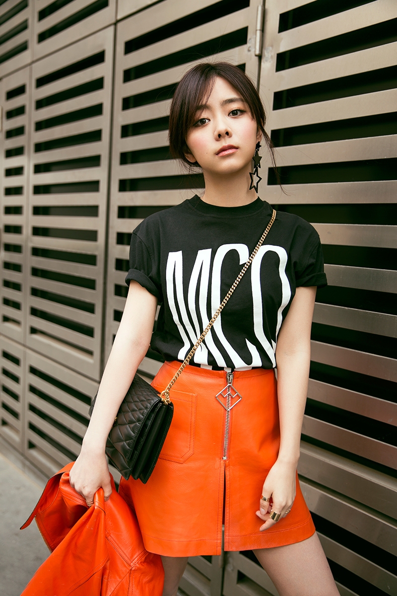 > 谭松韵街头写真 潮流搭配酷劲十足