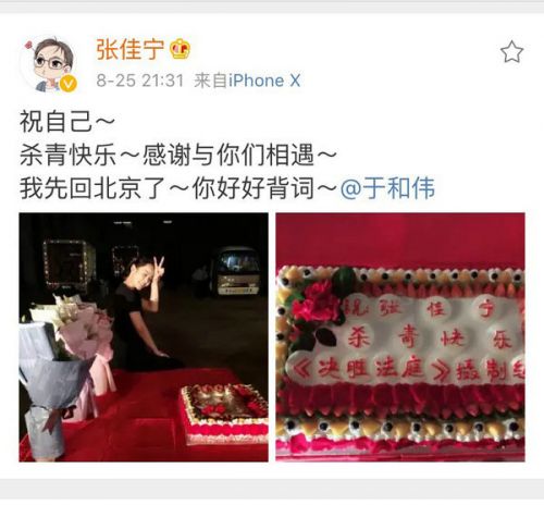近日,由张佳宁搭档于和伟主演的国内首部以“庭审为中心”的电视剧《决胜法庭》正式杀青,该剧以真实生动的法律案例为支撑,剧情跌宕起伏,环环相扣。剧中张佳宁饰演的助理检察官傅小柔是一个专业知识深厚,但办事风有些冒失的职场新人。杀青当晚,张佳宁在社交平台发布由剧组精心准备的杀青蛋糕,照片中的她闭眼甜笑,单手比V,并配文“祝自己~杀青快乐~感谢与你们相遇~”同组演员于和伟互动回应“杀青快乐!刻苦努力认真的大宁”可见敬业程度备受肯定。