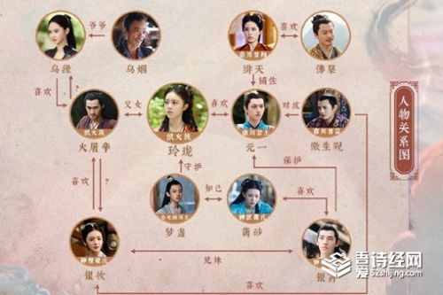 从图中我们大概可以看出剧中的人物关系,玲珑和火屠辛是父女关系,元一和玲珑之间是双向箭头,互相喜欢的,梦盏是守护着玲珑,梦盏和和篱砂是知己,篝砂和银霄是双箭头。互相喜欢的,银霄和银妆是兄妹关系。