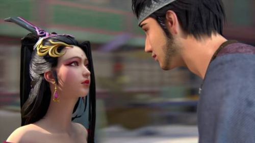 ­  高渲染,细建模的画质为这部作品增了不少彩,每一帧的画面都美的像壁纸,比如鬼街的画面,冷色调和暖色调交相呼应,相得益彰,色彩运用的真是绝妙。还有人物神情也做的非常自然不僵硬,一颦一笑都很流畅。