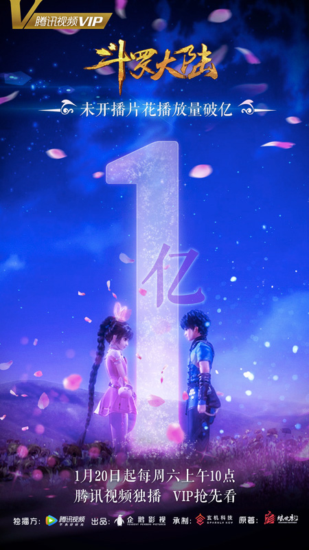 众多粉丝期盼的年度巨制《斗罗大陆》动画版将于2018年1月20日起每周六上午十点在腾讯视频独播,腾讯视频VIP每周可以提前多看一集,另外由萧敬腾为《斗罗大陆》动画版制作的主题曲MV将率先于1月19号发布。据悉动画版第一季共26集,每集20分钟,改编自唐家三少的网文作品《斗罗大陆》,动画版真实还原了《斗罗大陆》的原著内容。相信这部由企鹅影视出品,腾讯视频独播,玄机科技承制的优秀动画作品,将会再次把粉丝带回到那片充斥着青春与美好的“斗罗大陆”。