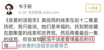 虽然原著作者、编剧大大已经在微博上说明结局不是悲剧,但网友还是希望看到一个圆满的甜蜜的结局,正片没有了番外也是可以的!究竟大家能不能如愿以偿呢?持续关注《亲爱的活祖宗》你就知道了!本周三、周四晚八点,大结局与你不见不散。