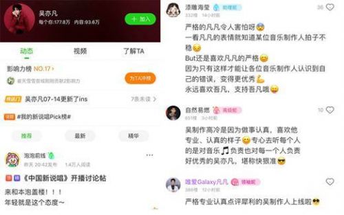 不仅自己有着国际化的专业水准,对参赛选手也是严格要求。上个夏天认真做音乐玩说唱的吴亦凡刷新了大家对于偶像歌手的认知,被网友标为“最严厉明星制作人”。