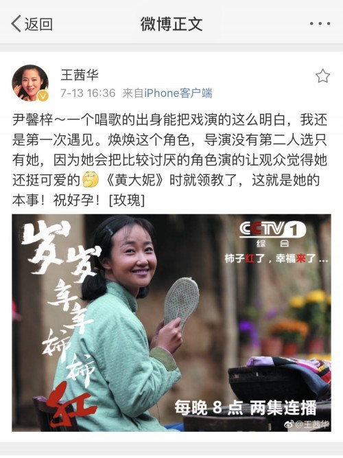 今年是改革开放的40周年,为了纪念改革开放40周年,由陕西广电影视文化产业发展有限公司出品的《岁岁年年柿柿红》正在央视一套黄金时间播出,自开播以来一直霸占收视率冠军的宝座。该剧由沈行导演执导,“农村剧一姐”王茜华首次跨界担任制片人与主演的影片。该片讲述了一名普通农村妇女“杨柿红”(王茜华饰)从结婚成家到遭遇困境最终儿孙满堂收获幸福的感人故事。其中尹馨梓饰演的焕焕一角,更是令观众印象深刻。