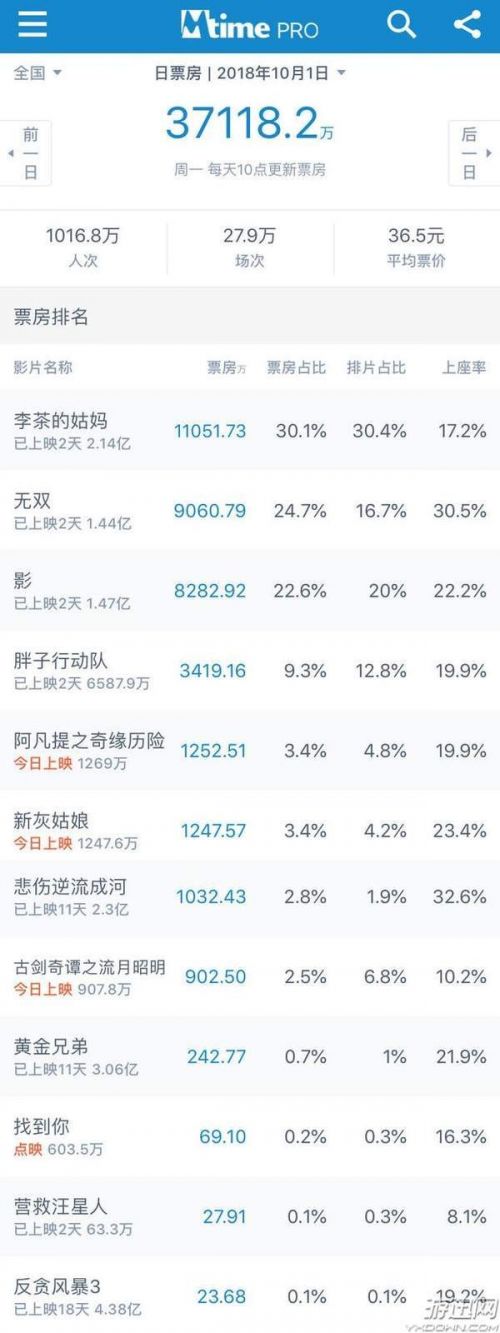 随着国庆假日的到来,内地的电影市场也迎来了正式的争夺赛,昨日电影大盘成绩3.71亿,相比去年国庆档首日3.84亿的成绩略低