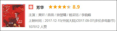 很多观众也都表示第一次在影厅看到这么多的老年人,还有观众称“很多老人都是组团来的,他们说想要从银幕上再看看他们的青春。”目前,《芳华》在微博电影评分里为8.9分。