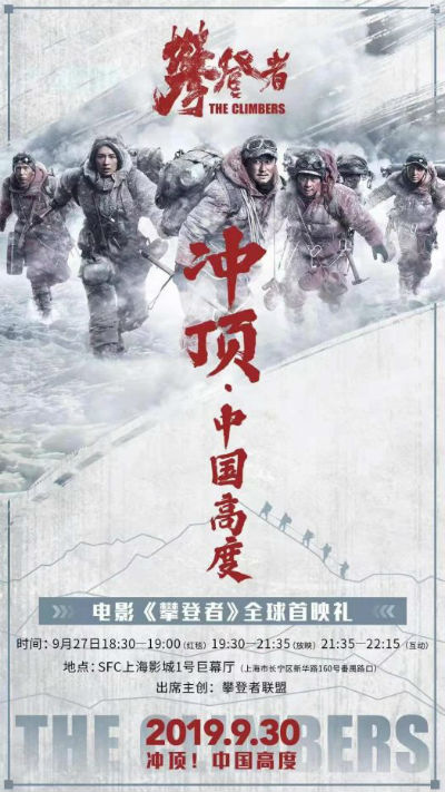 首映礼将于晚上七点半开始,分为观影和互动两部分。观众在观看攀登者们惊心动魄的攀登经历后,可以和主创们进行互动,聆听主创们在拍摄过程中所经历的趣闻趣事。而作为官方指定用车的福特领界,也将从头到尾见证攀登者们的光荣登顶,聆听现场观众奋进人心的攀登故事。