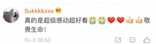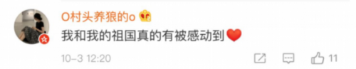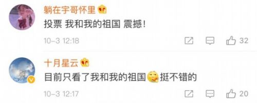 在这条微博下面有网友表示被《我和我的祖国》感动↓