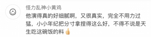 此外,有不少网友对饰演《我和我的祖国》中《夺冠》单元冬冬的小男孩韩昊霖印象深刻,夸他是个“演戏的小天才”↓