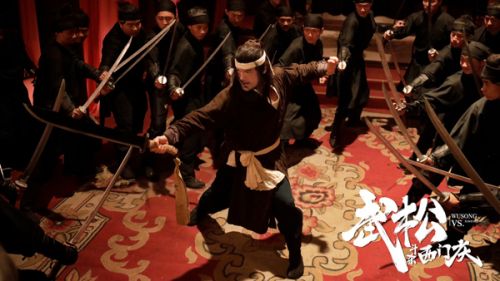 影片的故事由武松单枪匹马独闯匪窝拉开序幕,一开场就是一场激烈的肉搏戏,武松一人单挑全场救出下属华豹。此时与兄弟感情深厚的武松还是一个小小的都头,无大富大贵大豪情,却也家庭和睦,行匡扶正义之事。但是这一切都在武松远差归来后变了,兄长无故惨死,长嫂暗藏祸心,往日的父母官包庇凶手……等等一切把武松推上绝路。横刀立马为兄报仇,于是故事走向了最经典的一幕武松血溅狮子楼。故事层层推进,把一个小人物在乱世中的逆水行舟刻画的入木三分,镜头调度张弛有度,氛围营造得极好,这样的描摹又为这个经典故事添上了别出心裁的一笔。