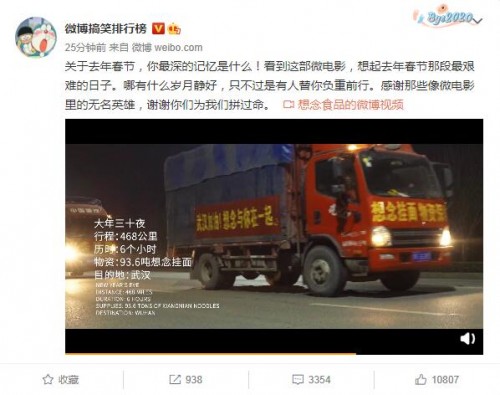 想念食品上下一心支援武汉食品供应的事迹被媒体报道后,也引起社会的广泛关注,并最终成为微电影《你是我的想念》创作的素材。