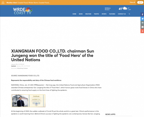 国外媒体同样对微电影《你是我的想念》中展现的中国抗疫精神称赞有加。美国哥伦比亚广播电视台在报道想念食品董事长孙君庚被联合国评为“粮食英雄”时称,中国在抗击新冠肺炎疫情中取得令世界瞩目的成绩,不仅在于正确、及时的抗疫决策,也在于有大量像孙君庚这样的民间英雄。他们身上所展现的万众一心共克时艰的抗疫精神,是中国对抗疫情的重要法宝。