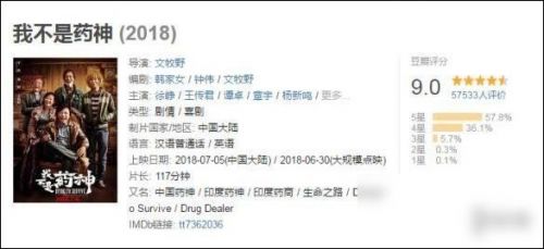点映期间《我不是药神》的票房已经超过了1亿元,昨日的上座率更是达到了42%,要知道这还是工作日。目前,已经有5万多网友在豆瓣上给《我不是药神》进行了打分,五星率超过56%,四星率也有37%,一星二星加起来不到1%。