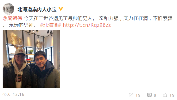 12月28日,有网友晒出在日本偶遇梁朝伟的照片,并称:“今天在二世谷遇见了最帅的男人。亲和力强,实力杠杠滴,不怕素颜 。永远的男神。”