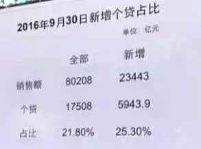 我们看16年9月,房地产销售8万亿,新增多少?2万3千亿。那么新增个贷多少?5900多亿。所以这个副行长说杠杆高。