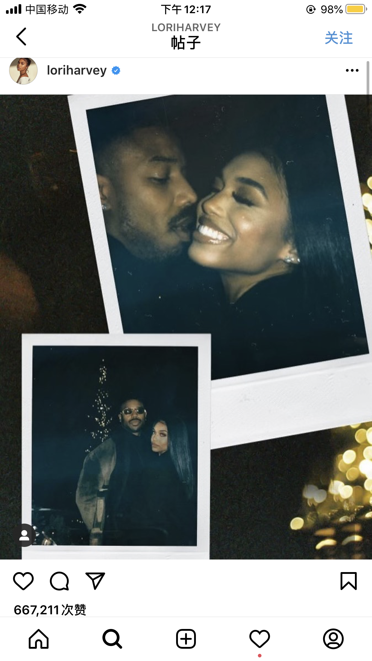 1月10日,迈克尔·B·乔丹(《黑豹2》主演)在社交平台晒出合影,公开自己与Lori Harvey交往中。Lori Harvey是一名模特,她的父亲是喜剧演员、主持人、作家Steve Harvey。之后Harvey也晒出二人亲密合影。