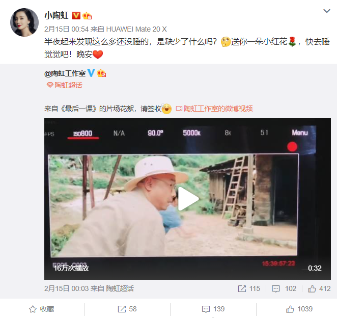2月15日,陶虹发文疑辟谣车祸传言,并晒出拍片花絮报平安。