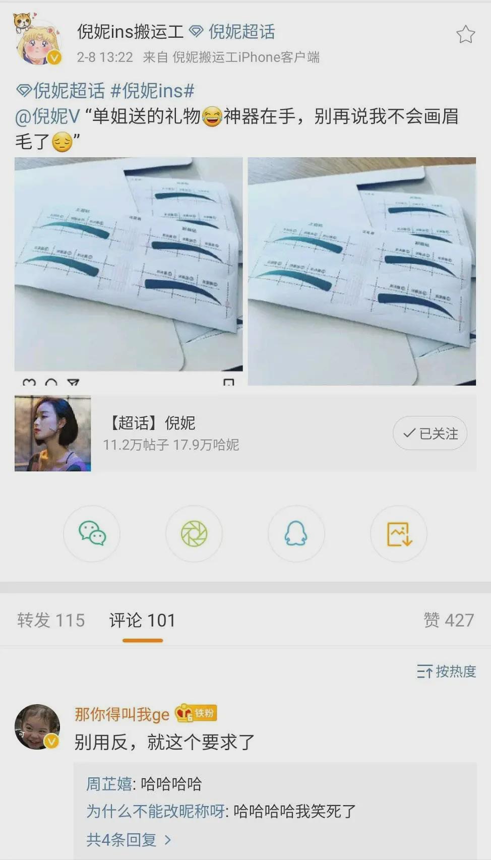 此前,有粉丝专门送给倪妮“画眉神器”,有留言称“别用反,就这个要求了”,但世事难料,这样的调侃却“一语成谶”。