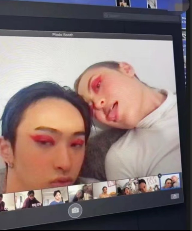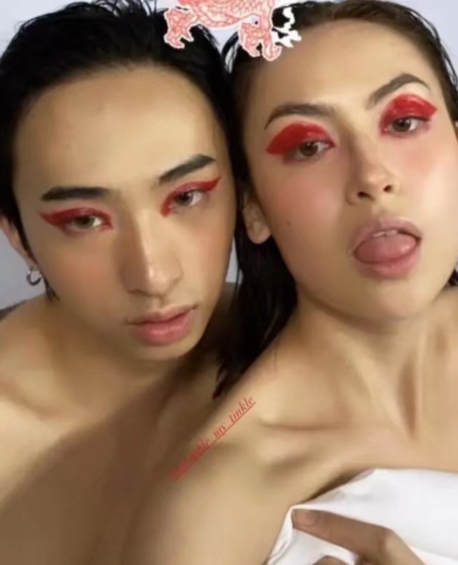 画面中,哈利裸着上半身,与一位美女紧贴着合影。两人化着同款大浓妆,鲜红色的眼影极具魅惑力,女方用被子遮住身体,微微吐出舌头,两人动作十分亲密。网友不禁猜测,哈利是不是有了女朋友,通过这种方式在曝光恋情?