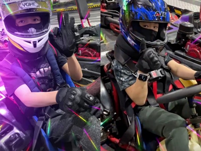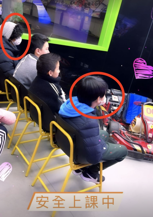 从上车起,她就开始录视频,她称本来今天是带两个儿子一起去开赛车,但是换衣服的时候被老三发现,一直缠着自己不放手,所以没办法也一块儿捎上了。她一
