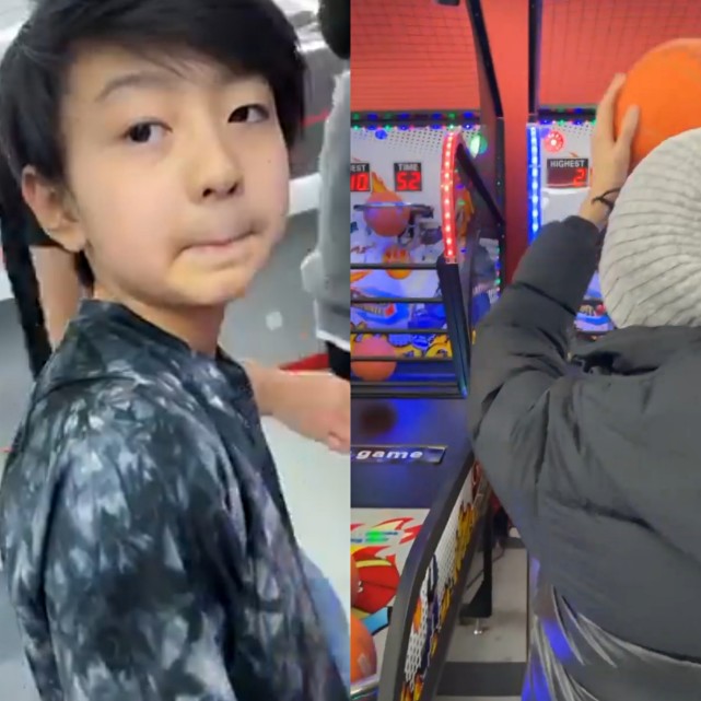 随后,母子三人在游戏区域投篮,玩得不亦乐乎。