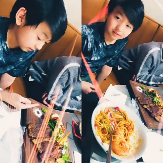 最后张柏芝带着孩子们去吃晚餐,小Q伸出手指沾取食物舔了舔,被妈妈批评教育,笑容羞涩。
