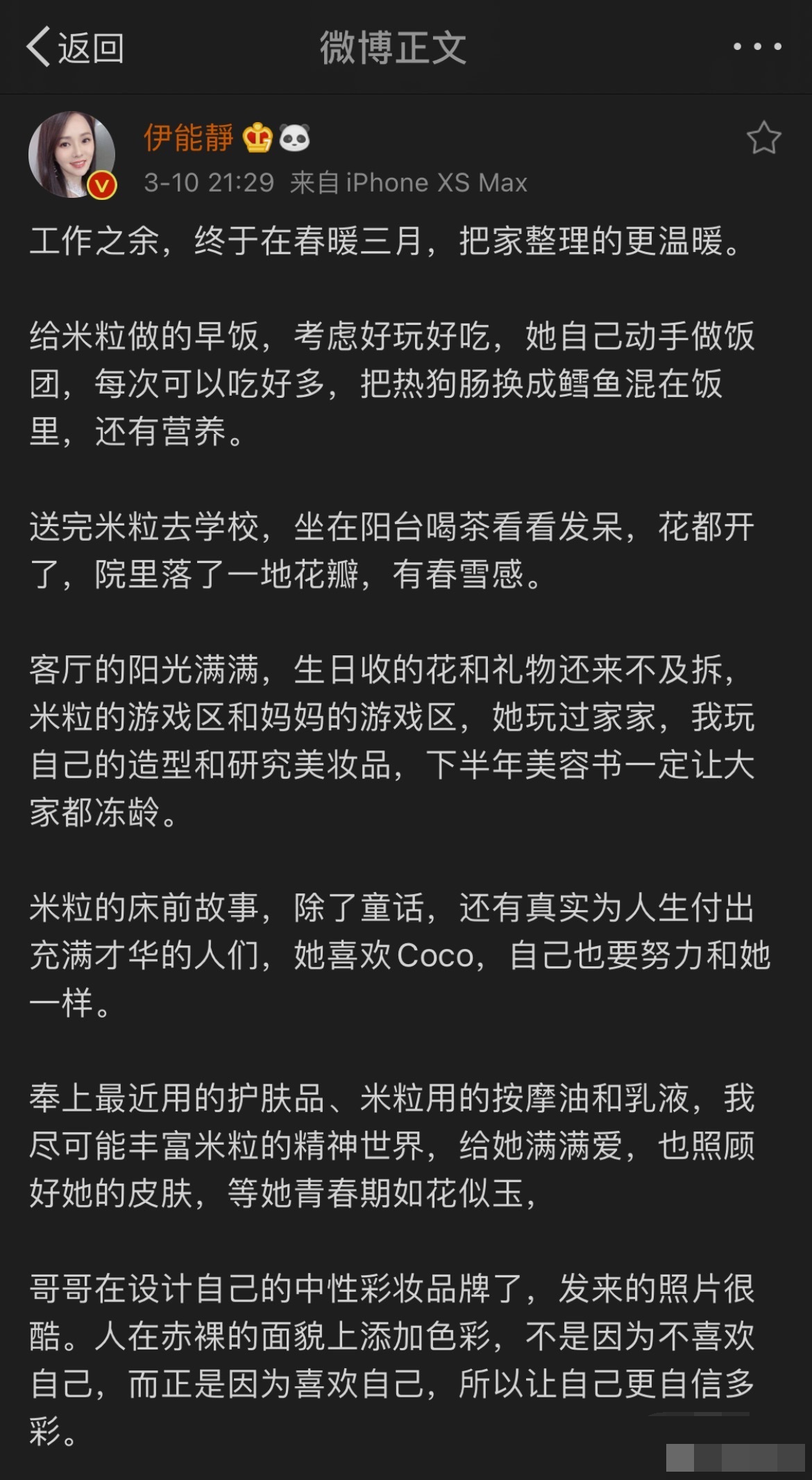 3月10日,伊能静发小作文分享近期生活,透露一家人未来的工作计划,网友大赞:姐姐生活真的超有仪式感!