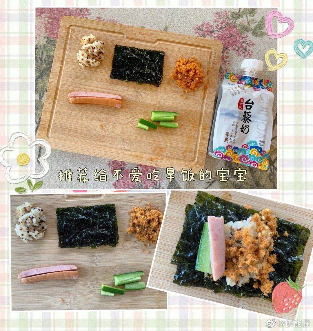 给米粒做的早饭,考虑好玩好吃,她自己动手做饭团,每次可以吃好多,把热狗肠换成鳕鱼混在饭里,还有营养。