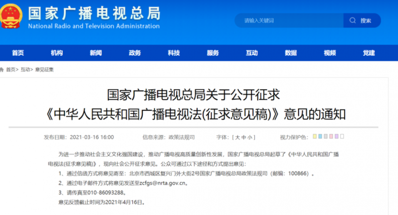 人民网-人民日报3月16日报道 16日,国家广播电视总局起草了《中华人民共和国广播电视法(征求意见稿)》。其中,广播电视节目主创人员因违反相关法律、法规而造成不良社会影响的,国务院广播电视主管部门可以对有关节目的播放予以必要的限制。