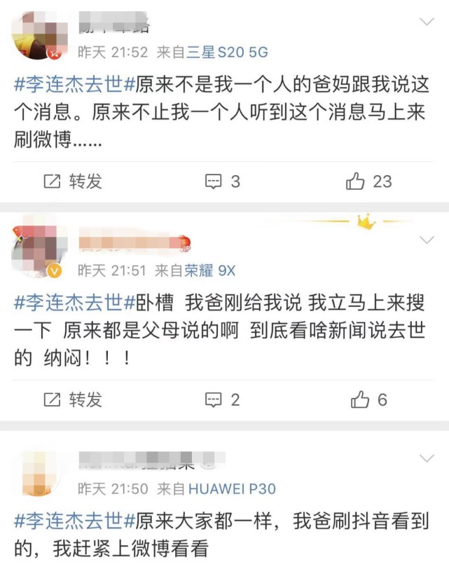 近日,有消息传出李连杰因患骨癌病逝,许多网友纷纷发文称自己被父母告知了这个消息,令不少粉丝和网友担心不已。