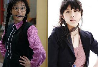不看右图敢肯定你们看不出来这是谁呢,就是江一燕啦, 在《假装情侣》中一改往日的清纯玉女甜美形象,不惜扮鲜花小丑,一头像沾满了胶水的十分脏的枯黄乱发,让人恶心的龅齿黄牙,手上还不知沾着啥东西,果然丑出了新高度,佩服!
