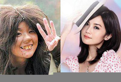 张柏芝在由王晶执导的香港爱情影片《求爱上上签》中,自毁形象,黑龅牙,大粗眉蓬头垢面像乞丐的造型丑得登峰造极。女神形象一落千丈,柏芝女神也是拼了