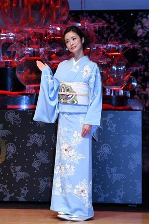 自2014年以来三度担任宣传大使的上户彩身着清凉的和服。上户彩和丈夫、EXILE队长HERO(49岁)都表示,“父母女儿和奶奶都很喜欢来这里,这是我们一家常来的地方。”