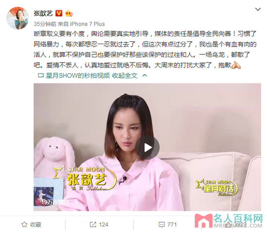 9月1日,张歆艺发文回应此事,写道“断章取义要有个度,舆论需要真实地引导,媒体的责任是倡导全民向善!习惯了网络暴力,每次都想忍一忍就过去了,但这次有点过分了,我也是个有血有肉的活人,就算不保护自己也要保护好那些该保护的过往和人。一场乌龙,都散了吧。爱情不丢人,认真地爱过就绝不后悔。大周末的打扰大家了,抱歉”。