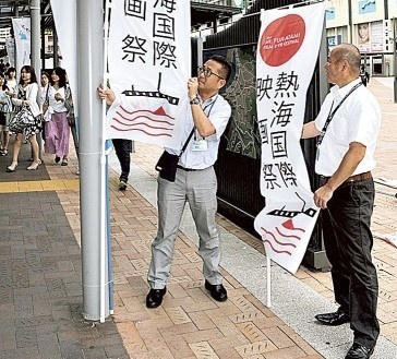 热海市首次举办的热海国际电影节于6月28日开幕。6月27日由热海市政府和民间企业组成的执行委员会的相关人员进行了会场的布置,做好迎接游客和电影粉丝的准备。