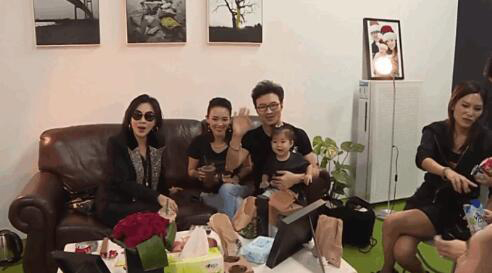 在后台,汪峰和两个女儿小苹果、醒醒都在,一家人和乐融融。