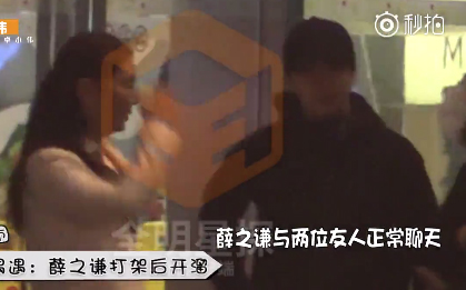 视频中,薛之谦和一对男女原本在正常聊天,之后却争吵起来,甚至还大打出手,场面甚是激烈。之后,那名男子竟揪住薛之谦的衣领推搡起来,司机赶紧帮忙上前解围。薛之谦也抓住机会飞快跑掉。