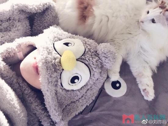 29日下午,刘亦菲在微博晒出自己悠闲的家居生活,睡衣,猫咪还有下半张脸。她穿着一件灰色的卡通毛绒连帽睡衣,躺在床上,用巨大的帽子盖住了自己大半张脸。帽子上,漫画中才会有的又大又圆的眼睛和黄色的鸟喙,再配上刘亦菲自己粉红色的嘴唇和尖尖的下巴,有一种特殊的萌感。对于此张图片,刘亦菲配字:“就说萌不萌?”随后诸多网友评论道:你最萌。
