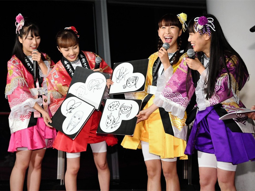 这是晴空塔首次与偶像团体合作。队长百田夏菜子(24岁)兴奋地说,“这窗户上正倒映着我们的LIVE画面呢!”