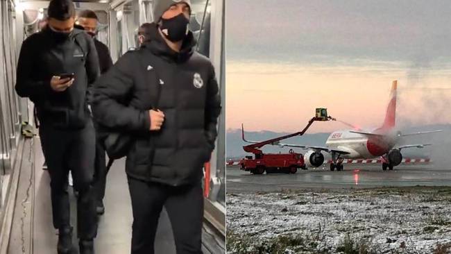 当地时间本周六,皇马将会在客场对阵奥萨苏纳。为了避开暴雪,皇马提前在本周五飞赴客场,结果还是一度被暴雪堵在了机舱内。由于跑道结冰,皇马飞机无法按时起飞。球员们在机场内坐了4个小时,直到晚上22点30分才得以起飞。皇马飞机在客场降落时,已经是深夜23点12分。