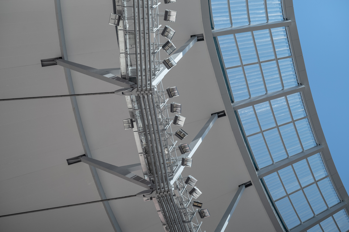 为什么要来现场看球?因为让球迷获得沉浸式体验的还有灯光秀和LED天幕屏。张汉卓介绍,球场顶部错落有致地安装了316个射灯,看上去这些灯的位置不规则,好像自由生长,实现上每个灯的角度都由计算机精确定位,能保证场地的最佳照明效果。2400勒克斯的照度已经达到了目前球场的最高标准,所以电视转播的效果也会十分清晰。球场内还有氛围灯,可以进行渲染气氛的开场灯光秀。“球迷在现场看球的体验会非常好。”