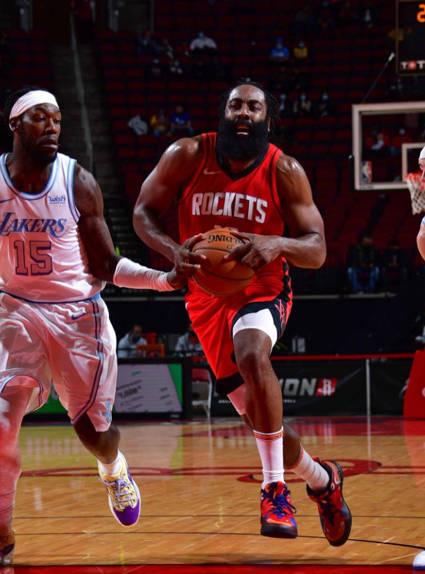 哈登的进攻依然是火箭队的风向标。北京时间2021年1月11日,火箭以102-120负于湖人队,哈登面对上个赛季淘汰自己的湖人拿下20分6篮板9次助攻和7次失误。