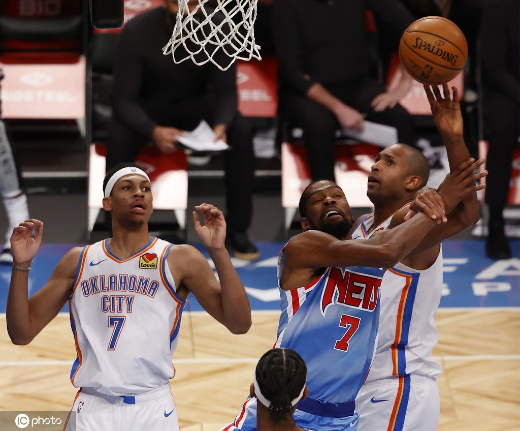 北京时间1月11日,2020-21赛季NBA常规赛继续进行,篮网队在主场迎战雷霆队。本场比赛,欧文继续因个人事宜缺阵。最终,雷霆队以129-116战胜篮网队。