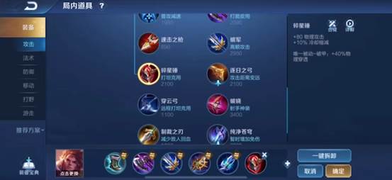 出装推荐:暗影战斧+抵抗之靴+破军+宗师之力+名刀·司命+碎星锤