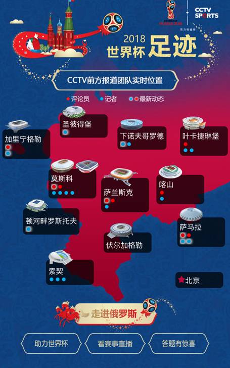 追随世界杯足迹,带你身临俄罗斯大地,体验世界杯氛围。