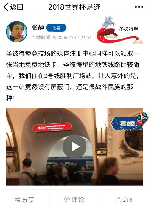 “圣彼得堡竞技场的媒体注册中心同样可以领取一张当地免费地铁卡,圣彼得堡的地铁线路比较简单,我们住在2号线胜利广场站,让人意外的是,这一站竟然设有屏蔽门,还是很战斗民族的那种!”