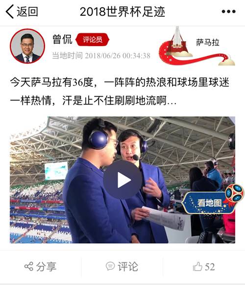 央视评论员曾侃在直播现场,萨马拉的气温达到了36度,一阵阵热浪吹得曾侃和徐阳直淌汗。徐指导也不忘在旁边调侃“小伙儿睡凉炕,全凭火力壮。”